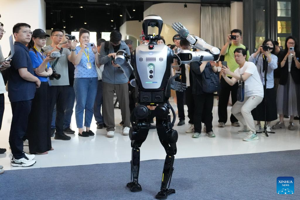 Un robot Leju ejecuta movimientos de taichí en el Centro de Innovación de la Industria de Ciencia Ficción ZGC del distrito de Shijingshan, Beijing, capital de China, el 20 de junio de 2025. (Xinhua/Zheng Huansong.)