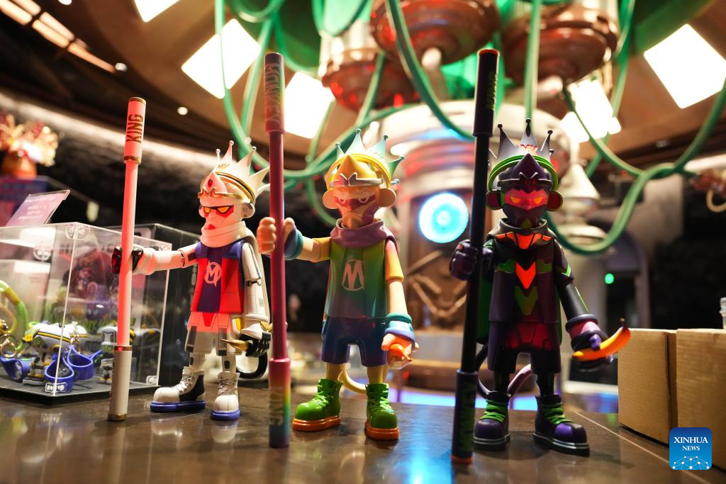 Esta foto tomada el 20 de junio de 2025 muestra los productos culturales y creativos expuestos en una cafetería del parque de ciencia ficción SoReal, transformado en el alto horno n.º 1 del parque Shougang, en el distrito de Shijingshan de Beijing, capital de China. (Xinhua/Zheng Huansong.)
