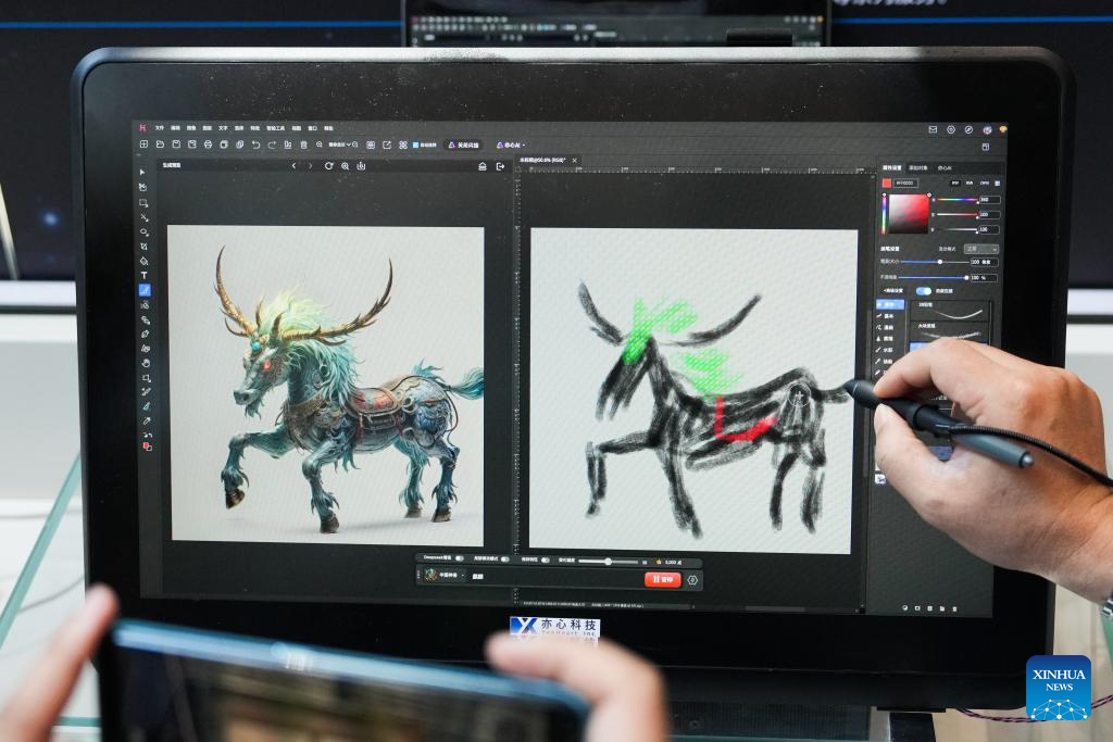 Miembros del personal realizan una demostración de tecnología de audio en el Centro de Innovación de la Industria de Ciencia Ficción de ZGC, en el distrito de Shijingshan, Beijing, capital de China, el 20 de junio de 2025. (Xinhua/Zheng Huansong.)