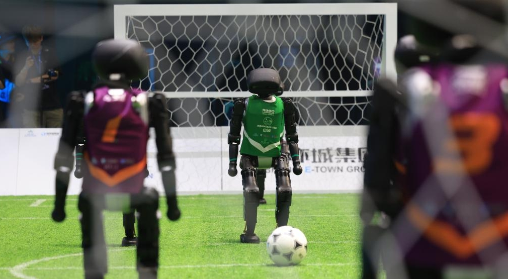 Partido de fútbol de robots impulsados por IA en Beijing