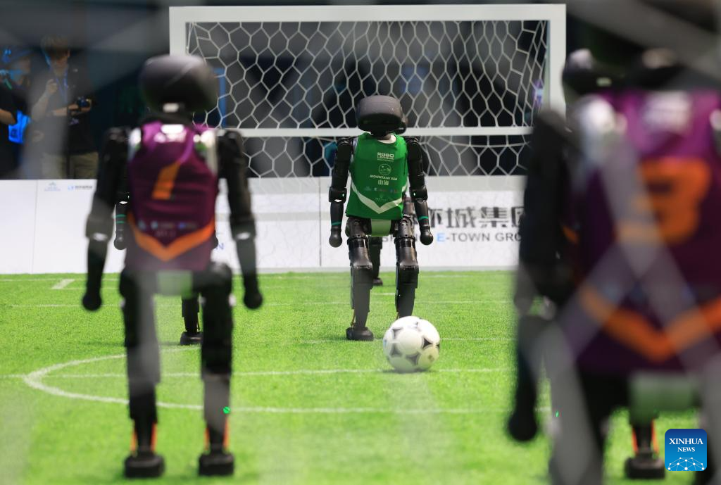 Partido de fútbol de robots impulsados por IA en Beijing