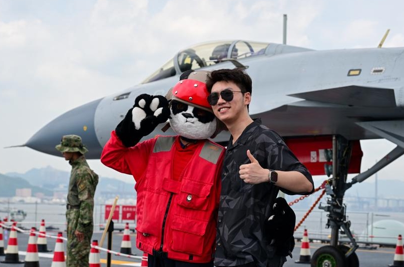 Una visitante posa para una fotografía mientras visita el portaaviones Shandong, en Hong Kong, en el sur de China, el 5 de julio de 2025. Hong Kong celebró el 28 aniversario de su retorno a la patria con una significativa visita de una flota de la Armada del Ejército Popular de Liberación de China, encabezada por el primer portaaviones de fabricación nacional de China, el Shandong. Desde noviembre de 2024, la Armada del Ejército Popular de Liberación de China ha realizado tres visitas a Hong Kong, desplegando una amplia gama de buques, incluidos portaaviones, buques de asalto anfibio y destructores de misiles. El portaaviones Shandong fue abierto a las visitas públicas durante este viaje. (Xinhua/Zhu Wei)
