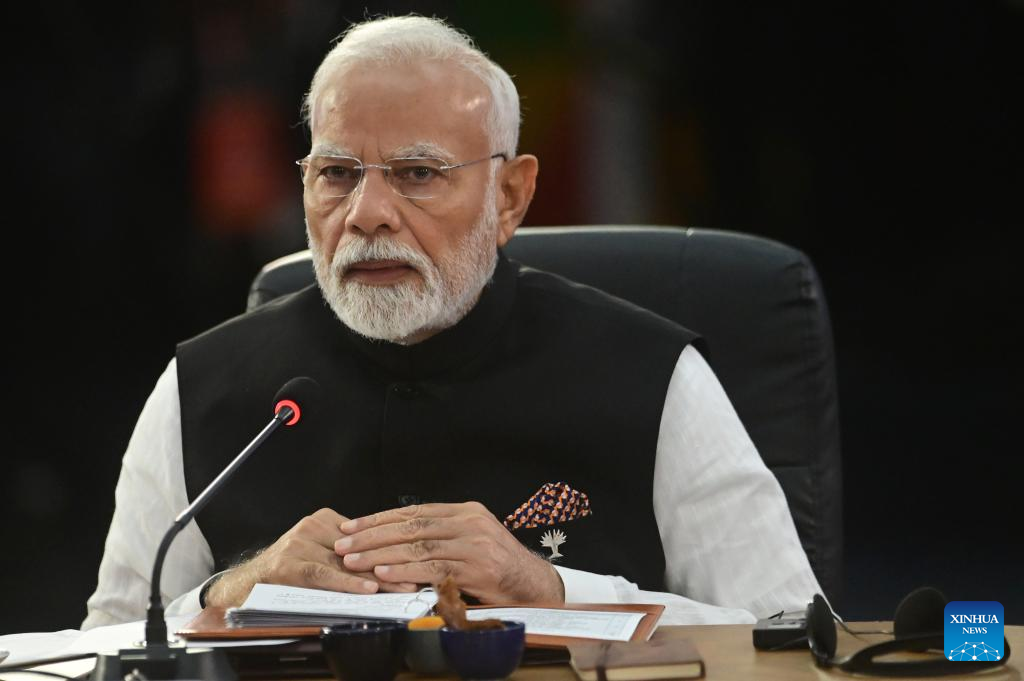 El primer ministro indio, Narendra Modi, asiste a la apertura de la XVII Cumbre de BRICS en el Museo de Arte Moderno, en Río de Janeiro, Brasil, el 6 de julio de 2025. La XVII Cumbre de BRICS comenzó el domingo en la ciudad brasileña de Río de Janeiro con la participación de jefes de Estado y de Gobierno de los países miembros del grupo, así como representantes de naciones asociadas e invitados. (Xinhua/Lucio Tavora)