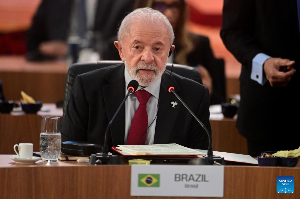 El presidente brasileño, Luiz Inácio Lula da Silva, pronuncia el discurso de apertura de la XVII Cumbre de BRICS en el Museo de Arte Moderno, en Río de Janeiro, Brasil, el 6 de julio de 2025. La XVII Cumbre de BRICS comenzó el domingo en la ciudad brasileña de Río de Janeiro con la participación de jefes de Estado y de Gobierno de los países miembros del grupo, así como representantes de naciones asociadas e invitados. (Xinhua/Lucio Tavora)