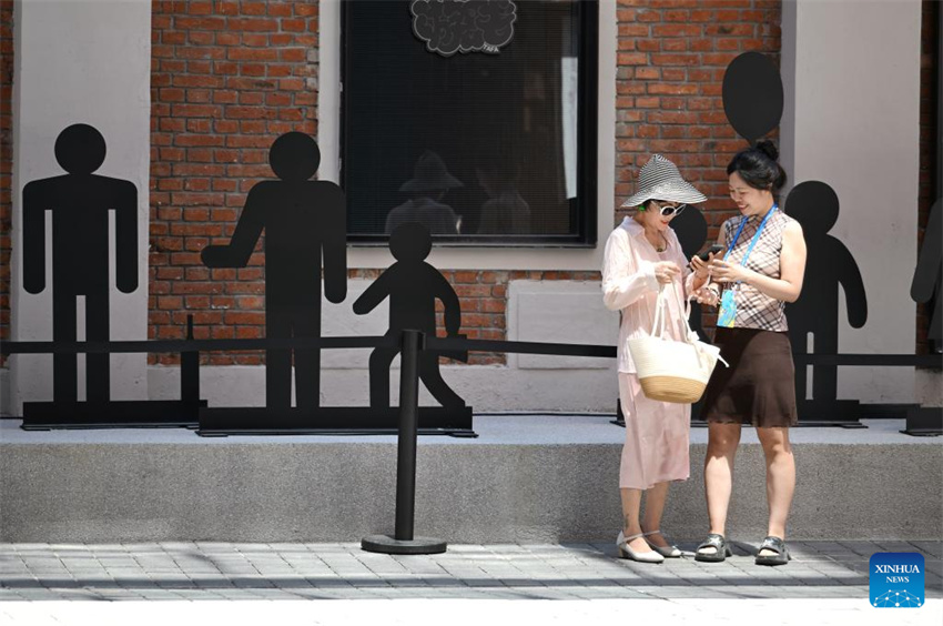 Varias personas visitan el Bloque de Arte de la Academia de Bellas Artes de Tianjin, en la ciudad septentrional china de Tianjin, el 13 de julio de 2025. (Xinhua/Li Ran.)