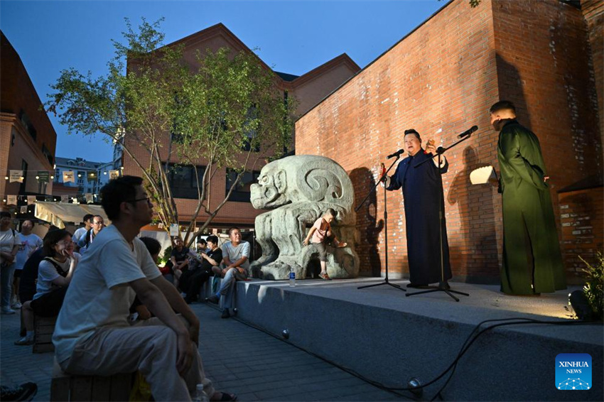 Artistas de cross-talk en el Bloque de Arte de la Academia de Bellas Artes de Tianjin, en el norte de China, el 12 de julio de 2025. (Xinhua/Sun Fanyue.)