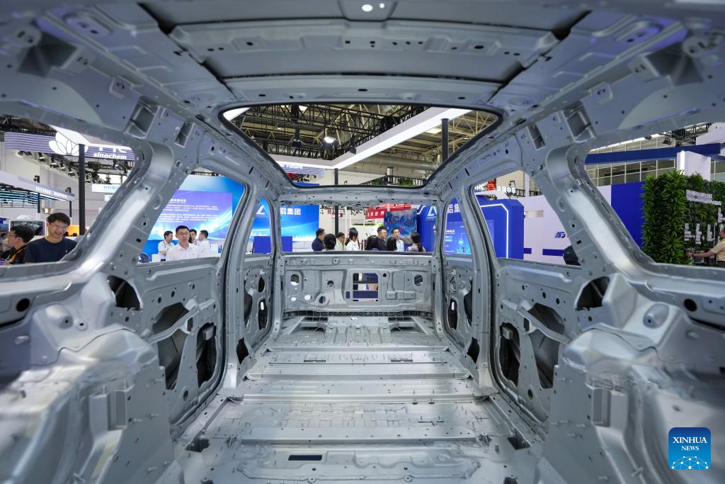 Personas observan la carrocería de un vehículo de nueva energía exhibido en el área de la Cadena de Manufactura Avanzada durante la III Exposición Internacional de la Cadena de Suministro de China (CISCE, por sus siglas en inglés), en Beijing, capital de China, el 16 de julio de 2025. Con el tema "Conectar el Mundo para un Futuro Compartido", la exposición, organizada por el Consejo Chino para la Promoción del Comercio Internacional, se inauguró el miércoles en Beijing. (Xinhua/Ju Huanzong)