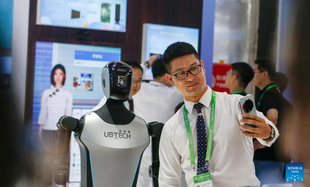 Un participante se toma una fotografía con un robot humanoide durante la III Exposición Internacional de la Cadena de Suministro de China (CISCE, por sus siglas en inglés), en Beijing, capital de China, el 16 de julio de 2025. Con el tema "Conectar el Mundo para un Futuro Compartido", la exposición, organizada por el Consejo Chino para la Promoción del Comercio Internacional, se inauguró el miércoles en Beijing. (Xinhua/Ding Hongfa)