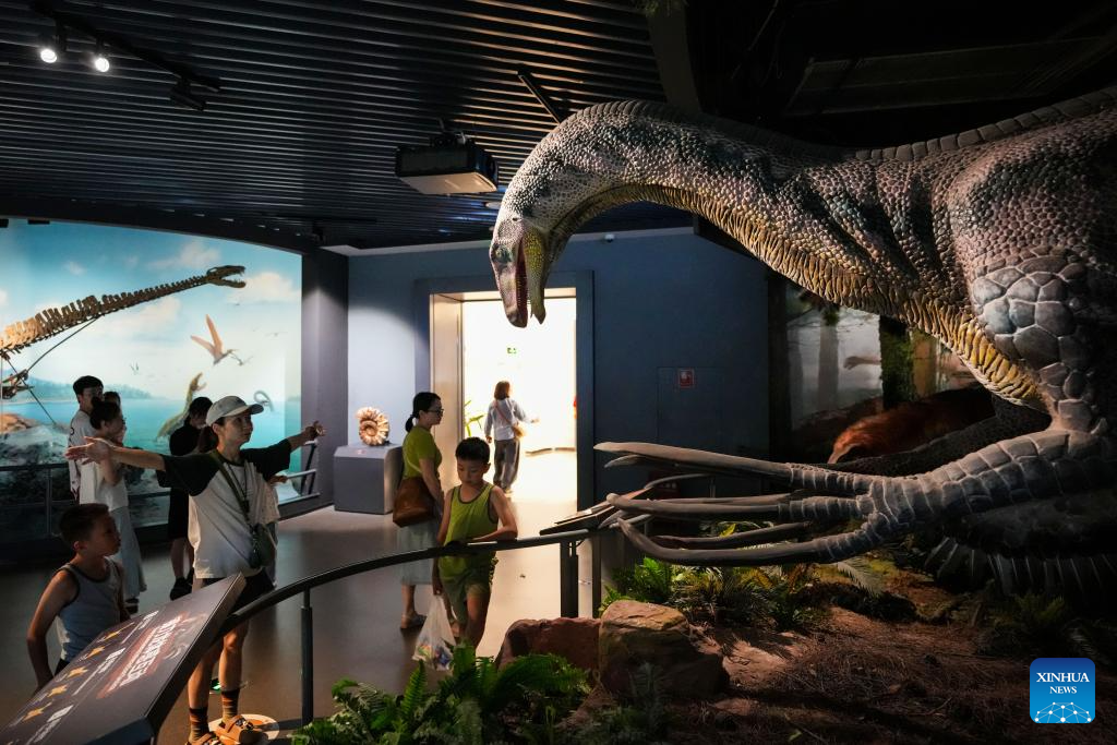 Este museo, el primero de este tipo construido en un yacimiento de fósiles del país, ha sido testigo de un aumento de las visitas y los viajes de estudio desde el comienzo de las vacaciones de verano. (Xinhua/Chen Xinbo.)