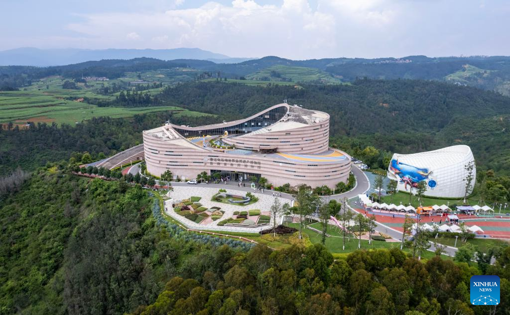 Una foto aérea de un dron muestra una vista del museo del patrimonio natural mundial del yacimiento fosilífero de Chengjiang, en el distrito de Chengjiang, provincia suroccidental china de Yunnan, el 15 de julio de 2025. (Xinhua/Chen Xinbo.)