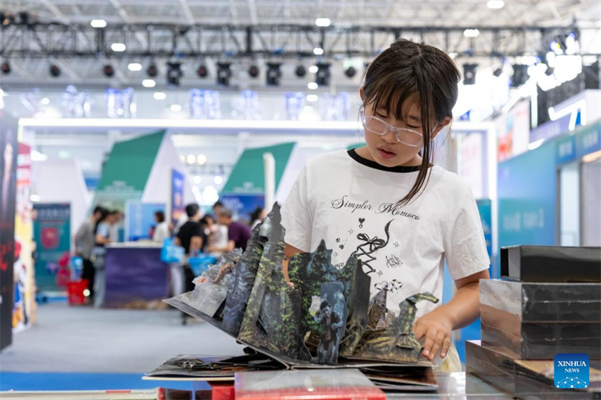 Una lectora hojea un libro en una feria del libro en Hohhot, región autónoma de Mongolia Interior, en el norte de China, el 31 de agosto de 2025. (Xinhua/Ma Jinrui.)