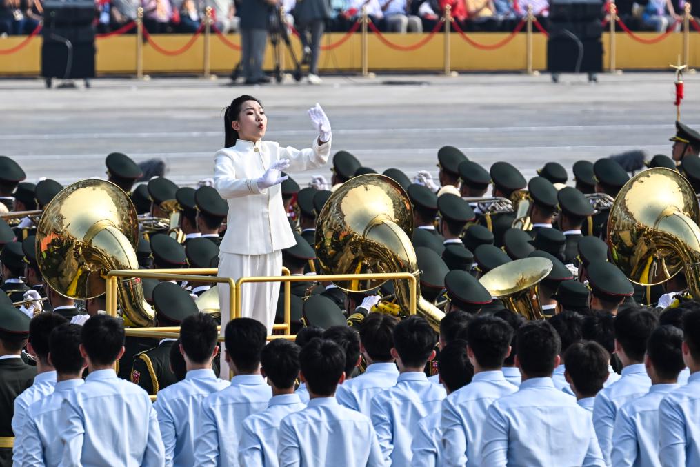 Miembros de un coro actúan antes de una gran conmemoración del 80 aniversario de la victoria en la Guerra de Resistencia del Pueblo Chino contra la Agresión Japonesa y la Guerra Mundial Antifascista, en Beijing, capital de China, el 3 de septiembre de 2025. (Xinhua/Li An.)