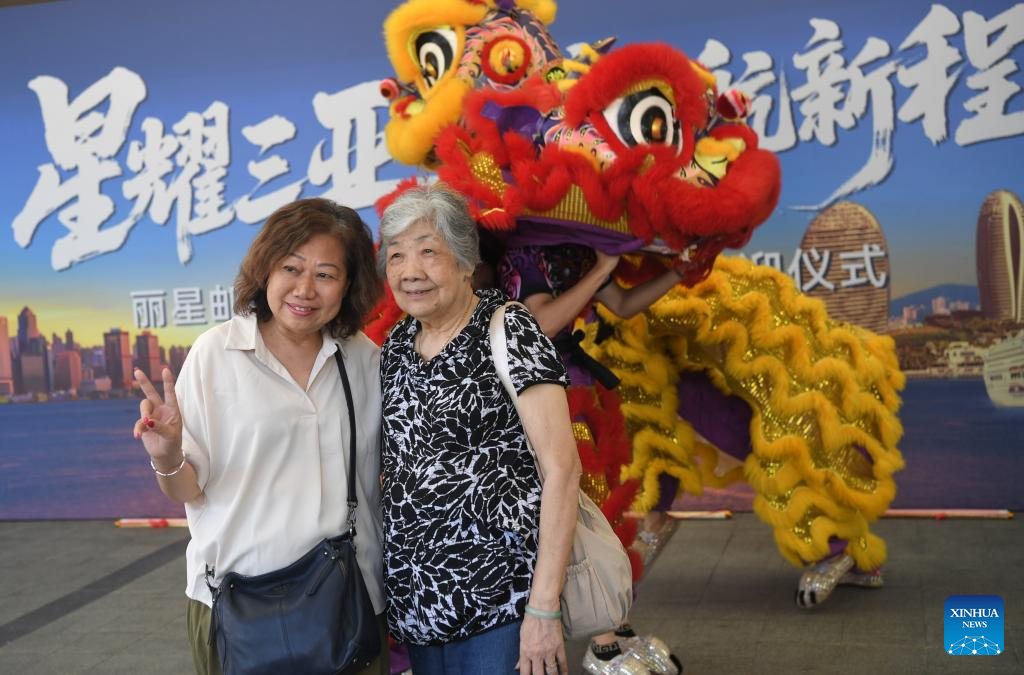 Turistas del crucero "Star Voyager" de Star Cruises posan para fotos en el puerto internacional de cruceros de la isla Phoenix en Sanya, provincia de Hainan, sur de China, el 4 de septiembre de 2025. (Xinhua/Zhao Yingquan.)