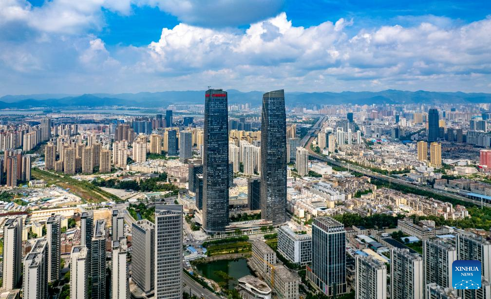 Vista aérea tomada con un dron el 4 de septiembre de 2025 de un paisaje de la ciudad, en Kunming, en la provincia de Yunnan, en el suroeste de China. Unos 500 periodistas, académicos, funcionarios gubernamentales y empresarios de 110 países u organizaciones internacionales y regionales se reunieron el viernes en la provincia de Yunnan, en el suroeste de China, para el Foro de Medios de Comunicación y Think Tanks del Sur Global 2025.