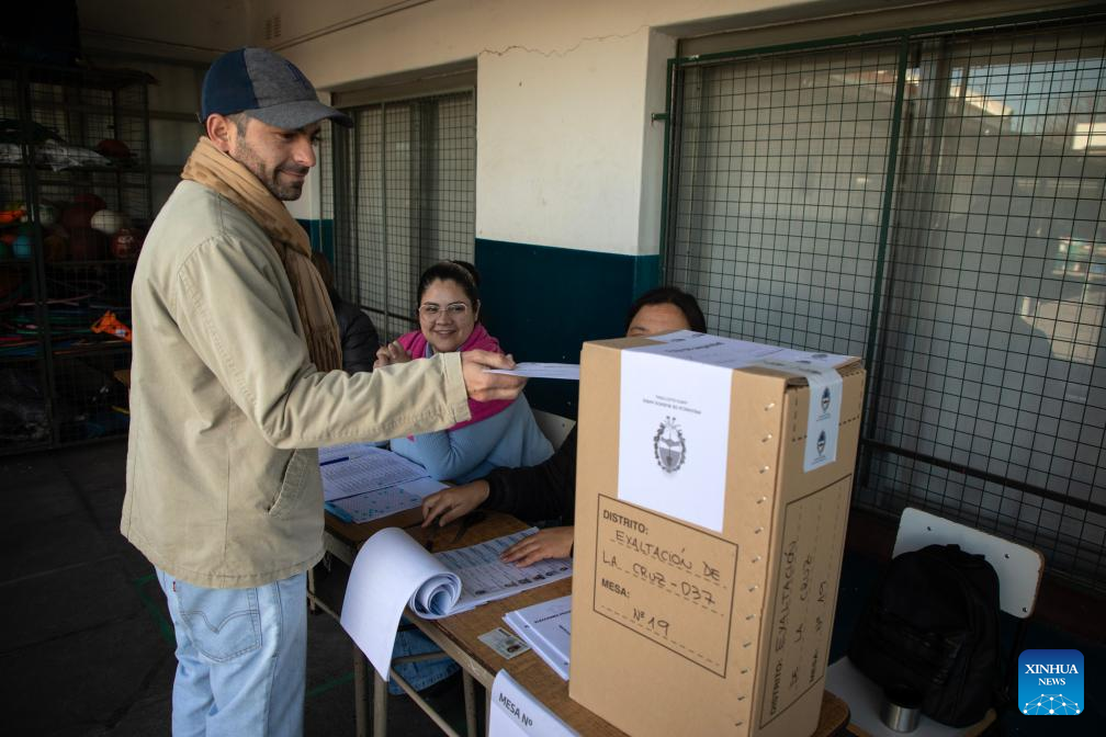 Un hombre emite su voto en una escuela durante la jornada de elecciones legislativas de la provincia de Buenos Aires, en la localidad de Capilla del Señor, partido de Exaltación de la Cruz, Argentina, el 7 de septiembre de 2025. La provincia argentina de Buenos Aires, donde reside el 37 por ciento del padrón electoral del país, realiza el domingo elecciones legislativas con más de 14,3 millones de ciudadanos habilitados para poder votar, en una jornada consideradas clave a nivel nacional. (Xinhua/Martín Zabala)
