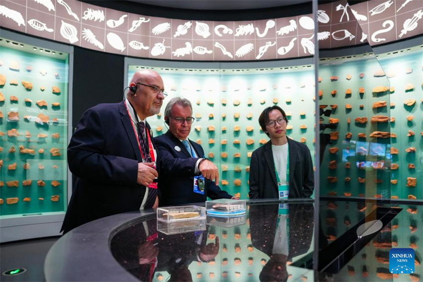 Los invitados visitan el Museo del Patrimonio Natural Mundial del Yacimiento Fosilífero de Chengjiang tras el Foro del Patrimonio Mundial del Sur Global en Yuxi, provincia de Yunnan, suroeste de China, el 7 de septiembre de 2025. (Xinhua/Chen Xinbo.)