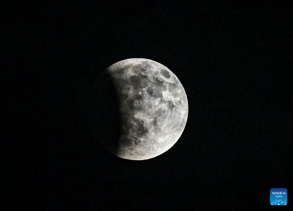 Imagen del 7 de septiembre de 2025 de la Luna vista durante un eclipse lunar, en Doha, Qatar. (Xinhua/Nikku)