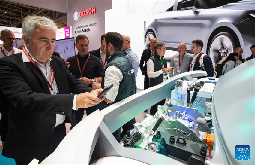 Visitantes en la zona de exposición de Bosch durante la IAA Mobility 2025 en Múnich, Alemania, el 9 de septiembre de 2025. La IAA Mobility 2025, una de las ferias de movilidad más grandes del mundo, comenzóen Múnich el martes, con fabricantes y proveedores de automóviles de todo el mundo mostrando vehículos eléctricos, conducción autónoma e innovaciones impulsadas por software. (Xinhua/Zhang Fan.)