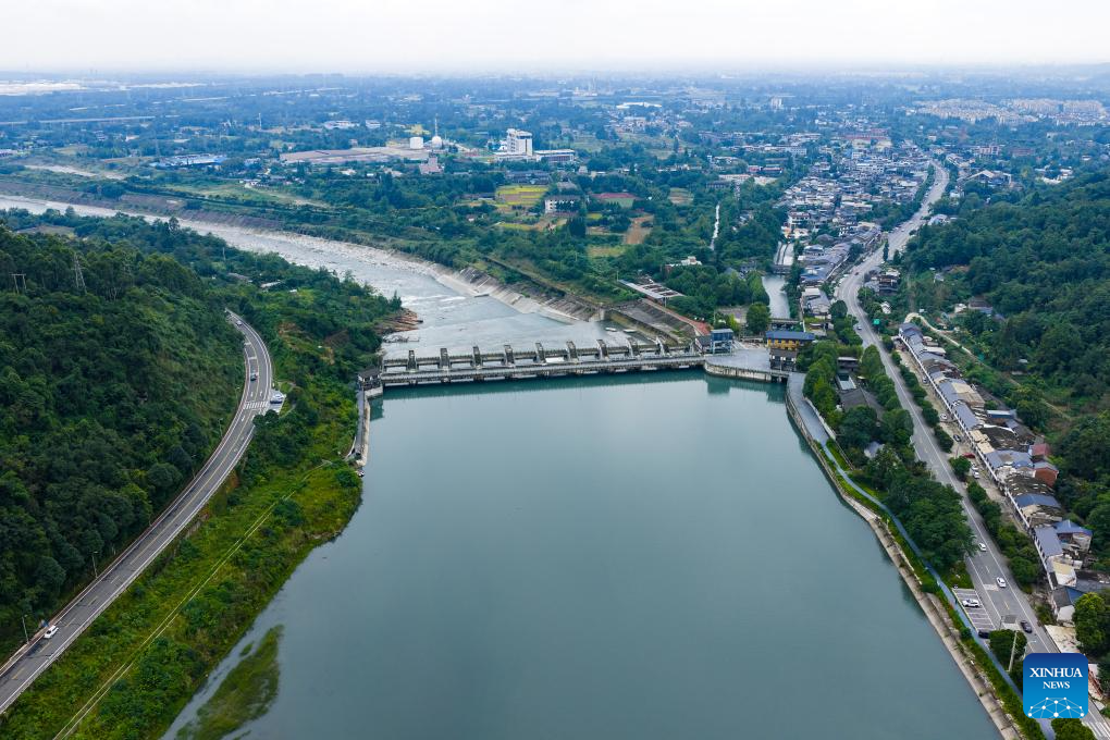 Una foto aérea tomada con un dron el 10 de septiembre de 2025 muestra una vista del Sistema de Riego Jianjiangyan en la provincia de Sichuan, en el suroeste de China. (Foto de Zhang Yong/Xinhua.)