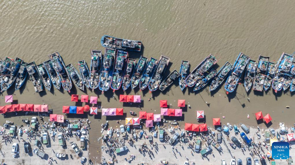 Aldeanos cosechan uvas en el distrito de Chengyang de la ciudad de Qingdao, provincia oriental china de Shandong, el 11 de septiembre de 2025. (Foto de Wang Haibin/Xinhua.)