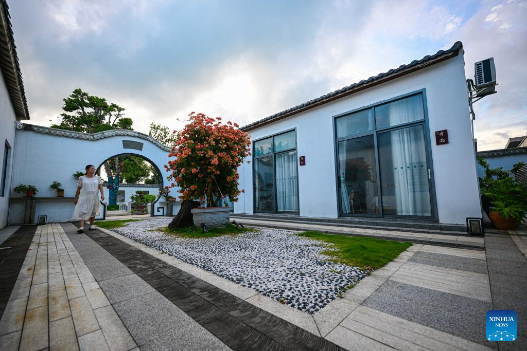 Esta foto tomada el 9 de septiembre de 2025 muestra un patio de una casa de huéspedes en la aldea de Jiamei. (Xinhua/Pu Xiaoxu.)