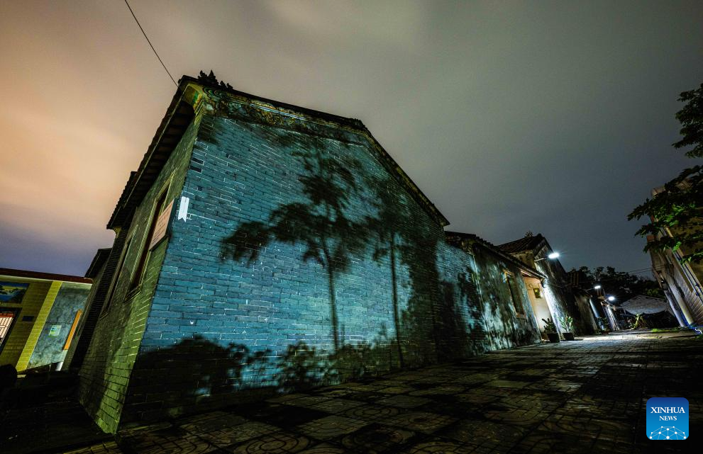 Esta foto tomada el 10 de septiembre de 2025 muestra la vista nocturna de la aldea de Jiamei. (Xinhua/Pu Xiaoxu.)