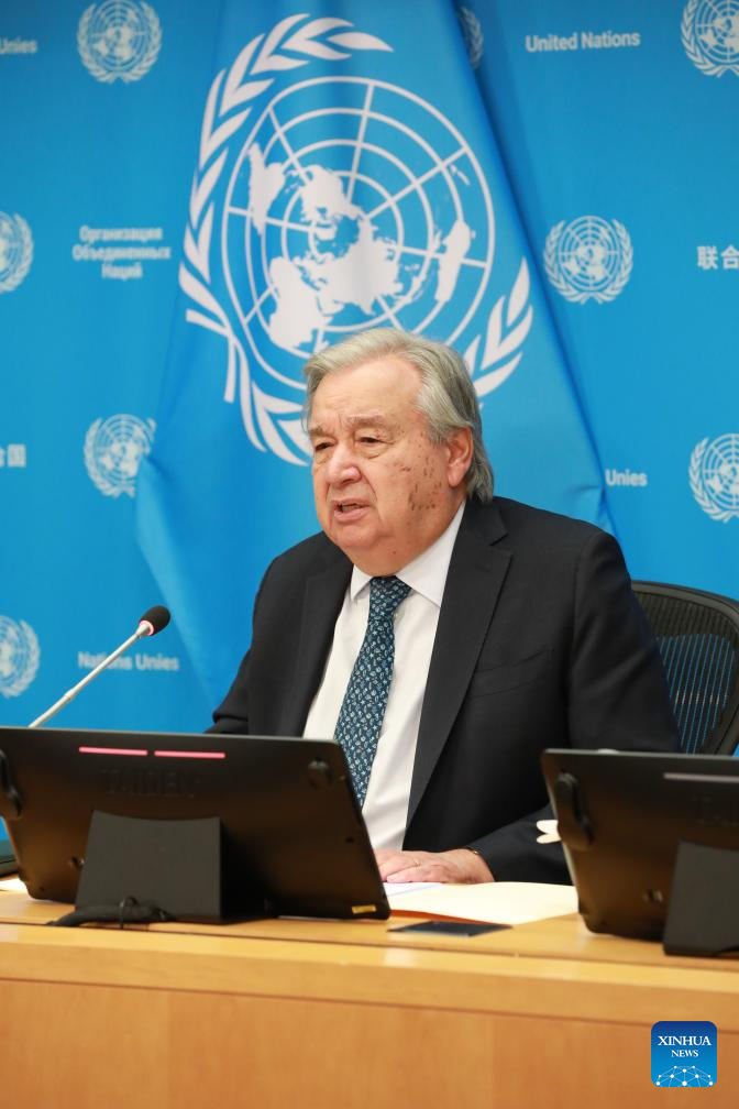 El secretario general de la ONU, António Guterres, habla con la prensa en la sede de la ONU, en Nueva York, el 16 de septiembre de 2025. Guterres indicó el martes que las iniciativas globales propuestas por China son totalmente compatibles con la Carta de las Naciones Unidas. (Xinhua/Xie E)