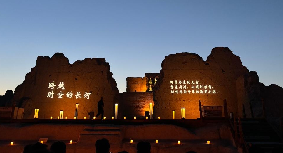 Esta foto tomada con un teléfono móvil muestra al público en un concierto durante una visita nocturna a las ruinas de Jiaohe en Turpan, región autónoma uigur de Xinjiang, en el noroeste de China, 23 de agosto de 2025. (Xinhua/Lyu Qiuping)