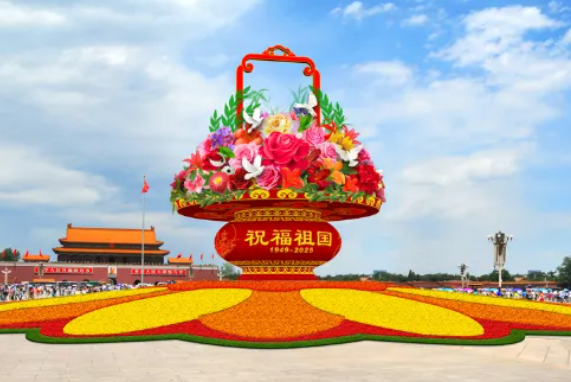 El esquema prevé una gigantesca cesta floral en la plaza de Tian'anmen, así como 10 conjuntos de parterres tridimensionales a lo largo de la avenida Chang An para ofrecer un ambiente festivo durante el feriado.