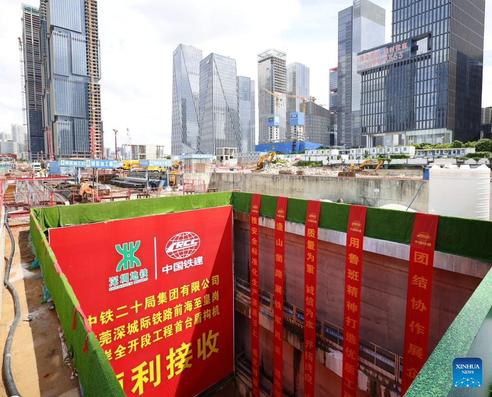 Esta foto tomada el 16 de septiembre de 2025 muestra el pozo de acceso de una tuneladora en la sección completamente operativa del tramo Qianhai-Puerto de Huanggang de la red ferroviaria interurbana Guangzhou-Dongguan-Shenzhen en Shenzhen, provincia de Guangdong, en el sur de China. Dos túneles contratados por China Railway 20th Bureau Group Co., Ltd. han sido perforados con éxito. Uno es parte del tramo Qianhai-Puerto de Huanggang de la red ferroviaria interurbana Guangzhou-Dongguan-Shenzhen, un proyecto que agilizará los viajes de negocios, turismo y desplazamientos entre esas ciudades. El otro es parte de la Línea 16 del Metro de Shenzhen, que reducirá los tiempos de viaje y los costos de transporte para los pasajeros. (Xinhua/Liu Dawei).