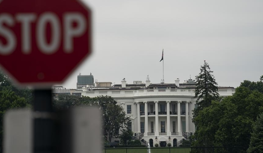 Imagen del 22 de junio de 2022 de una señalización frente a la Casa Blanca en Washington D.C., Estados Unidos. (Xinhua/Liu Jie)
