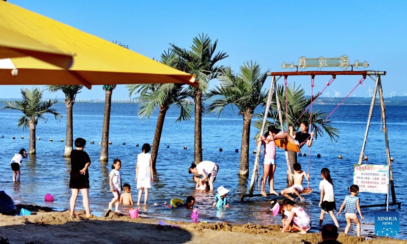 Una foto tomada con un dron muestra a personas junto al río Songhua en Harbin, provincia de Heilongjiang, al noreste de China, el 6 de julio de 2025.