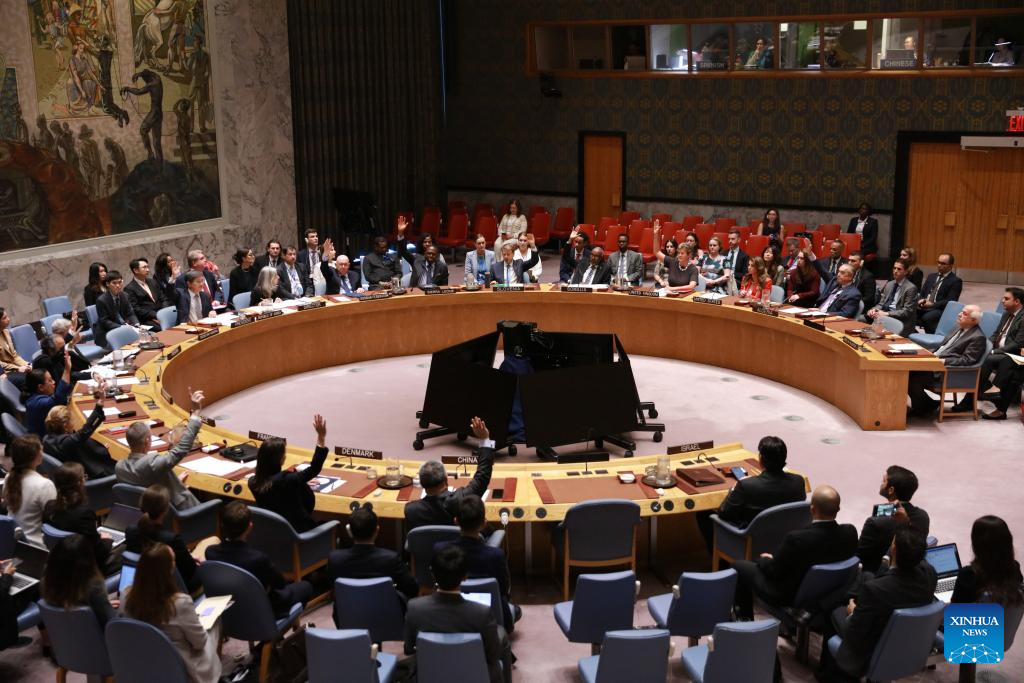 Representantes votan un proyecto de resolución durante una reunión del Consejo de Seguridad de la ONU, en la sede de la ONU, en Nueva York, el 18 de septiembre de 2025. Estados Unidos vetó el jueves un proyecto de resolución del Consejo de Seguridad de la ONU que hubiera exigido a Israel levantar de inmediato todas las restricciones impuestas al acceso y la entrega de la ayuda humanitaria a Gaza. (Xinhua/Xie E)