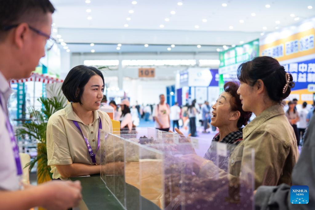 Asistentes se informan sobre el sustrato de cultivo horticultural durante la 23.ª Exposición Internacional de Flores de Kunming, el 19 de septiembre de 2025. (Xinhua/Gao Yongwei).
