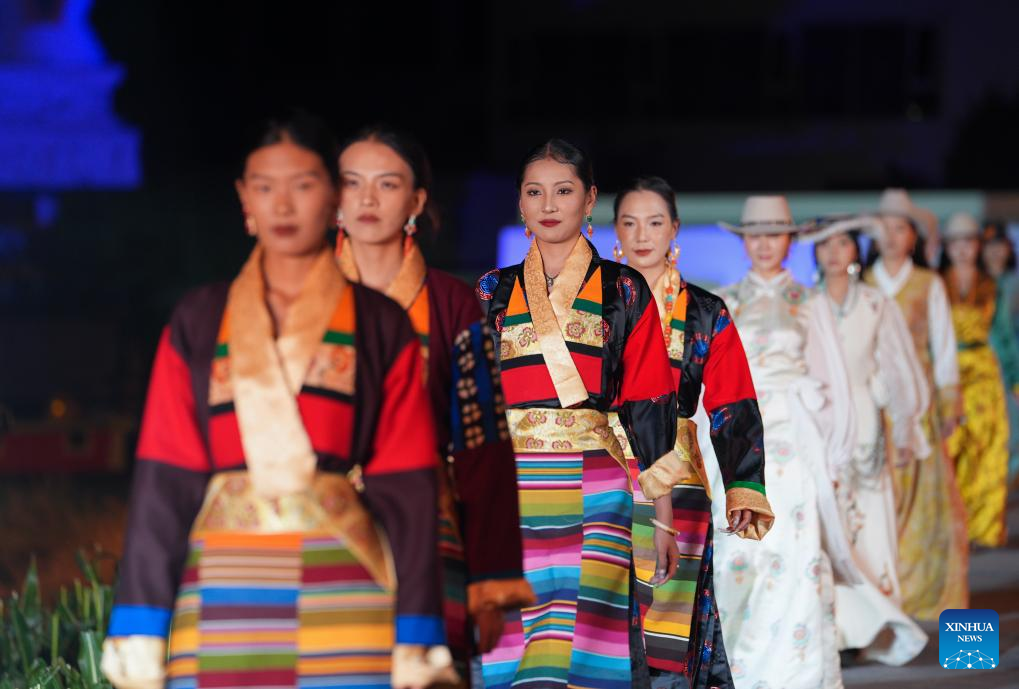 Un desfile de vestimenta tibetana se lleva a cabo en la aldea Zhongde del distrito Xiangcheng, prefectura autónoma de la etnia tibetana de Ganzi, en la provincia de Sichuan, suroeste de China, el 20 de septiembre de 2025. (Xinhua/Jiang Hongjing).
