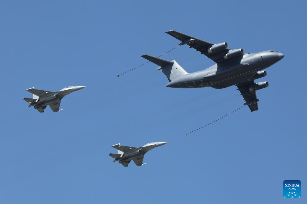 Un avión cisterna YY-20A y dos aviones de combate J-16 durante la jornada de puertas abiertas 2025 de la Fuerza Aérea del Ejército Popular de Liberación de China y el Salón Aeronáutico de Changchun, Changchun, provincia de Jilin, en el noreste de China, 23 de septiembre de 2025. Ambos eventos concluyeron el martes. (Tan Sicheng/Xinhua)