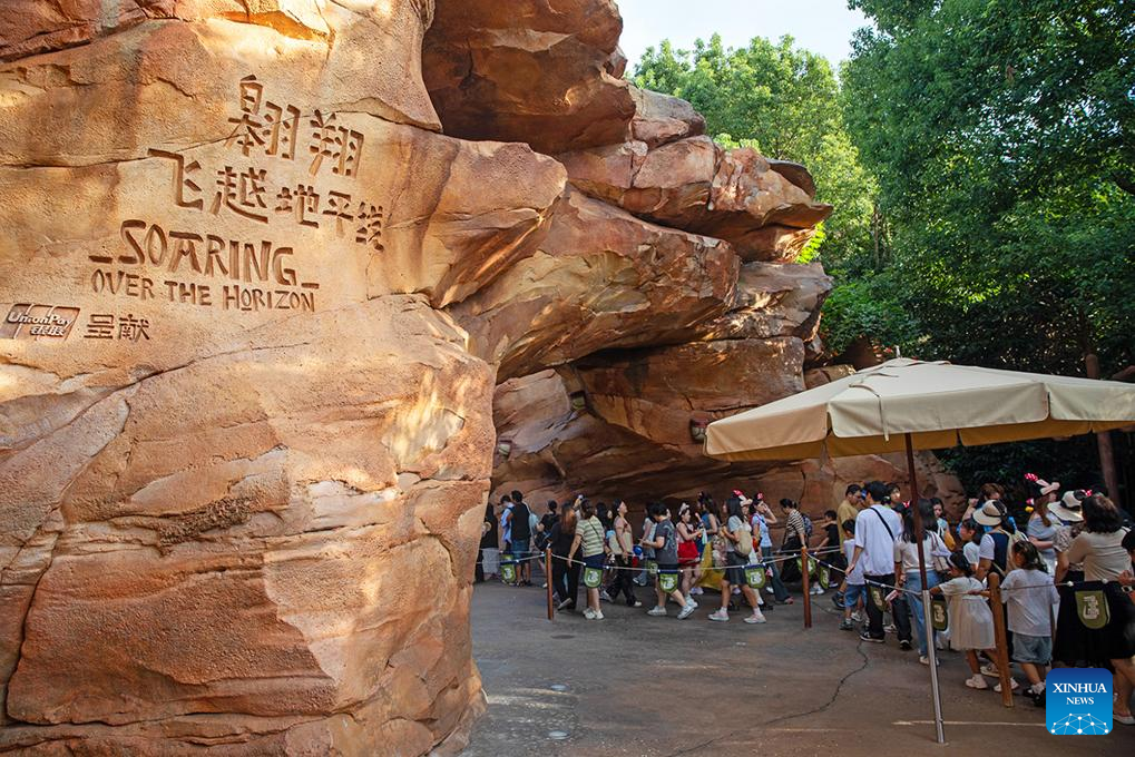 Turistas hacen cola en la atracción icónica de Shanghai Disney Resort, 'Soar Over the Horizon' (Vuelo por el Horizonte), en Shanghai, este de China, el 19 de septiembre de 2025. (Xinhua).