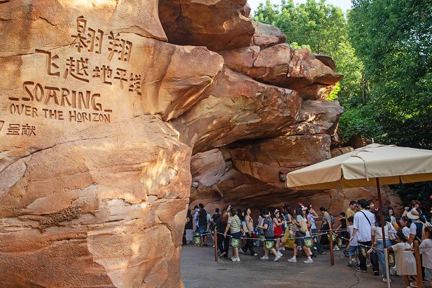 Turistas hacen cola en la atracción icónica de Shanghai Disney Resort, 'Soar Over the Horizon' (Vuelo por el Horizonte), en Shanghai, este de China, el 19 de septiembre de 2025. (Xinhua).