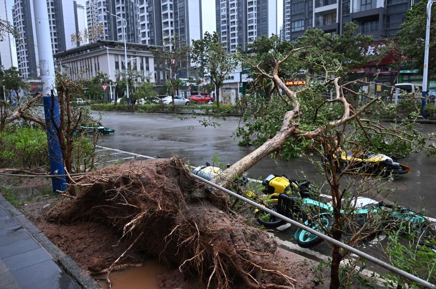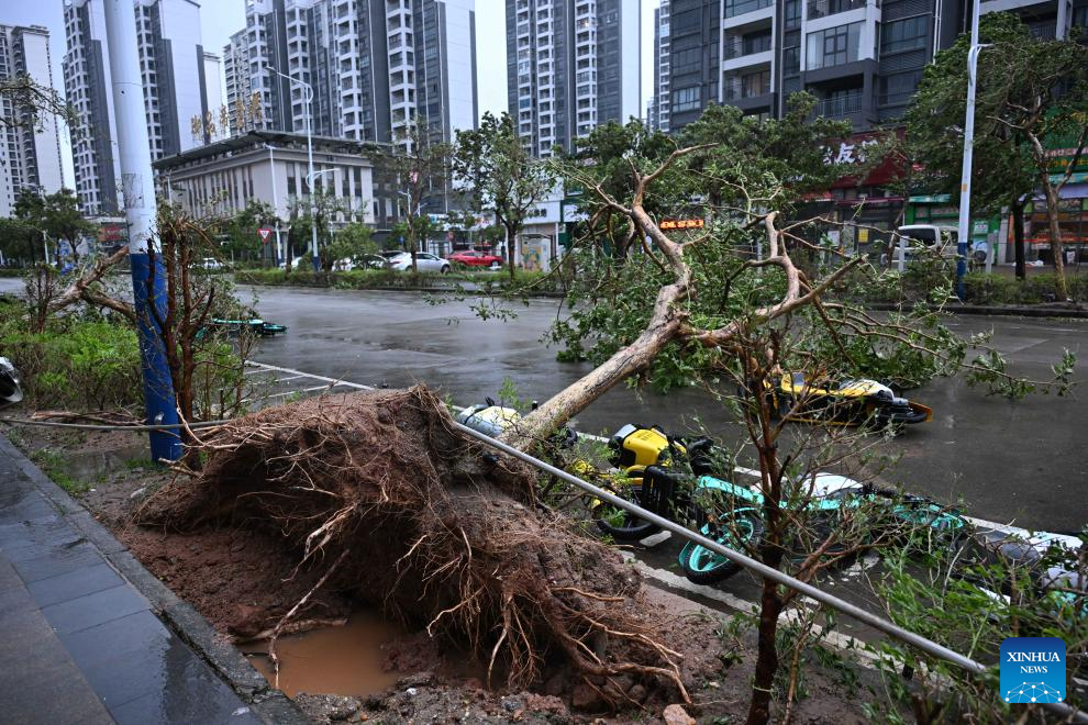 El tifón Ragasa, el decimoctavo tifón de la temporada del Pacífico en 2025, tocó tierra en la provincia de Guangdong alrededor de las 17:00 horas de hoy miércoles. El tifón impactó la isla Hailing, que es parte de la ciudad de Yangjiang en Guangdong, con una fuerza máxima del viento cerca de su centro de 40 metros por segundo.