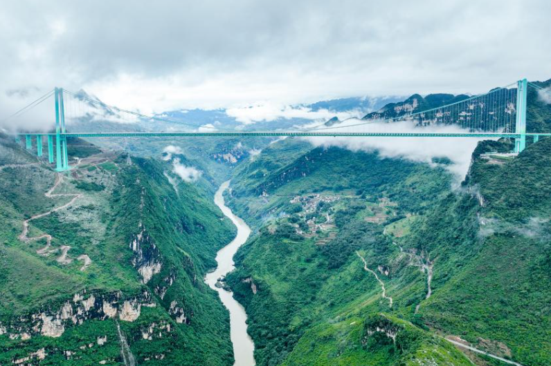 El Puente del Gran Cañón de Huajiang tiene 2.890 metros de largo con un vano principal de 1.420 metros. Elevándose 625 metros sobre el río, se alza como el puente más alto del mundo y en el de mayor vano construido en una zona montañosa, según el gobierno provincial.