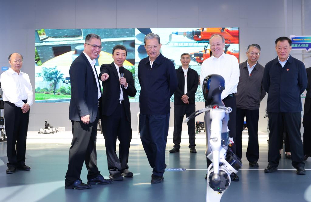 Zhao Leji, miembro del Comité Permanente del Buró Político del Comité Central del Partido Comunista de China y presidente del Comité Permanente de la Asamblea Popular Nacional (APN), visita un centro de innovación de robots humanoides, en Beijing, capital de China, el 28 de septiembre de 2025. Zhao realizó una gira de investigación y estudio en Beijing el domingo. (Xinhua/Huang Jingwen)