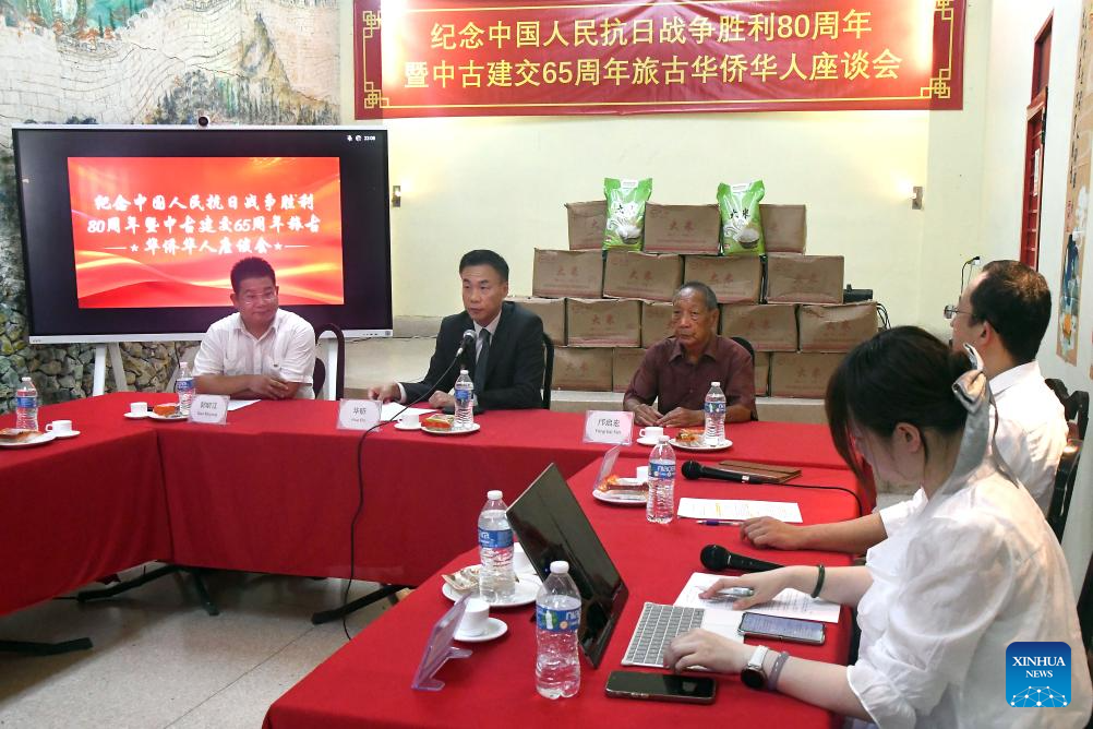 El embajador de China en Cuba, Hua Xin (2-i), pronuncia un discurso en un seminario, en La Habana, capital de Cuba, el 29 de septiembre de 2025. Chinos residentes en La Habana participaron el lunes en un seminario para celebrar el 65º aniversario del establecimiento de relaciones diplomáticas entre China y Cuba y el 80º de la victoria en la Guerra de Resistencia del Pueblo Chino contra la Agresión Japonesa. (Xinhua/Joaquín Hernández)