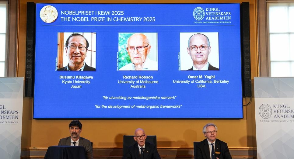 Susumu Kitagawa, Richard Robson y Omar M. Yaghi fueron galardonados hoy miércoles con el Premio Nobel de Química 2025 por desarrollar estructuras metal-orgánicas, anunció la Real Academia de las Ciencias Sueca.