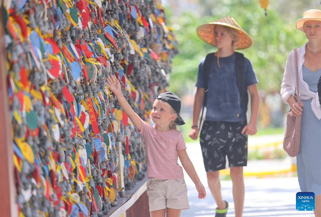 Turistas visitan la Zona Turística Cultural de Nanshan, en Sanya, en la provincia de Hainan, en el sur de China, el 7 de octubre de 2025. Turistas de todo el país no muestran señales de que su entusiasmo disminuya a medida que las vacaciones por el Día Nacional y el Festival del Medio Otoño llegan a su fin.. (Xinhua/Chen Wenwu)
