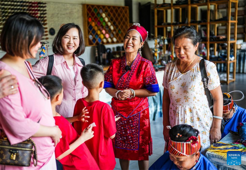 A lo largo de los años, Long Luying ha proporcionado formación gratuita en técnicas de bordado a mujeres locales, creando oportunidades de empleo para más de 1.200 mujeres rurales de la aldea. (Xinhua/Tao Liang).