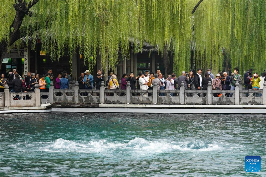 Turistas visitan el Manantial Baotu en la ciudad de Jinan, provincia de Shandong, este de China, el 15 de octubre de 2025. (Xinhua/Zhu Zheng).