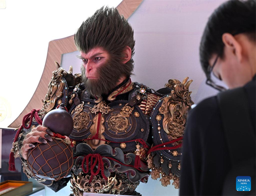 Una muestra del videojuego "Mito Negro: Wukong" se exhibe en la décima Exposición Internacional de Derechos de Autor de China en Qingdao, el 16 de octubre de 2025. (Xinhua/Li Ziheng).