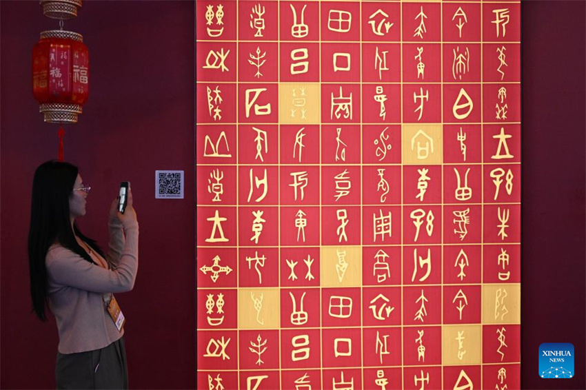 Una asistente toma fotografías de una obra exhibida en la décima Exposición Internacional de Derechos de Autor de China en Qingdao, provincia de Shandong, este de China, el 16 de octubre de 2025. Bajo el lema "La inteligencia digital lidera el futuro, los derechos de autor promueven el desarrollo innovador", la décima Exposición Internacional de Derechos de Autor de China y el Foro Internacional de Derechos de Autor 2025 se inauguraron el jueves en Qingdao. (Xinhua/Li Ziheng).