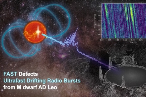Un equipo chino que utiliza el radiotelescopio esférico de 500 metros de apertura (FAST), apodado el «ojo del cielo de China», ha detectado por primera vez de forma inequívoca ráfagas de radio a escala de milisegundos procedentes de regiones de manchas estelares. El hecho supone una nueva forma de sondear directamente los campos magnéticos estelares a pequeña escala y profundiza sobre los orígenes de la actividad magnética estelar, informaron los investigadores el domingo.