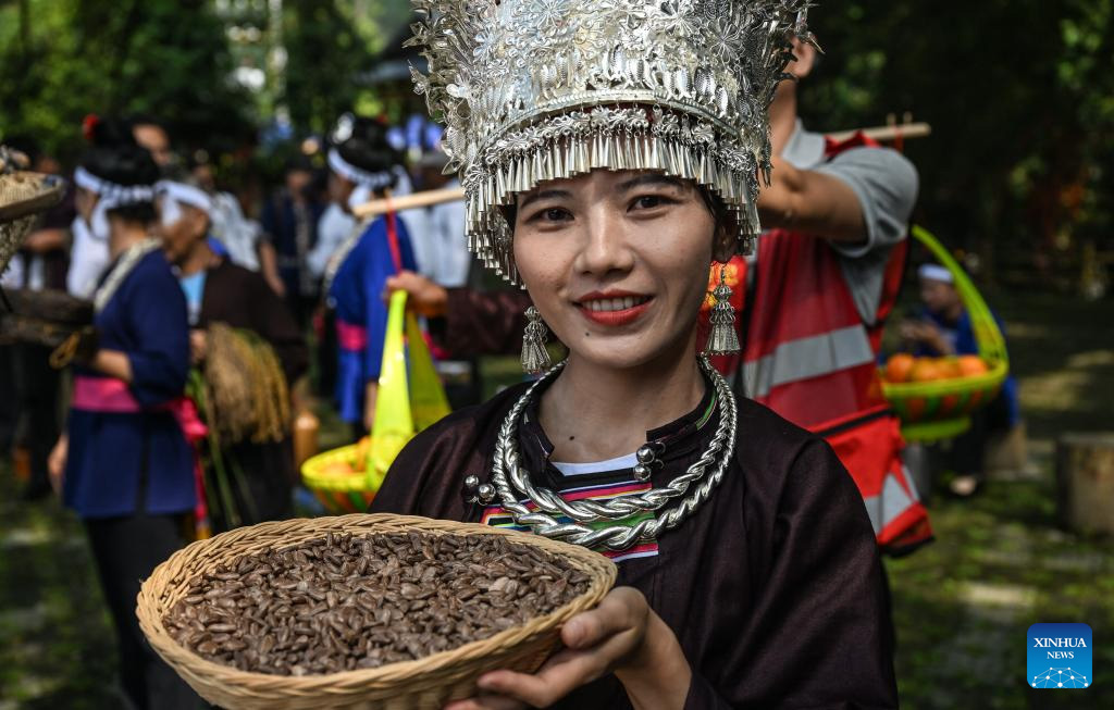 Actividades de celebración de la cosecha en el pueblo Chankou de Guangxi, sur de China